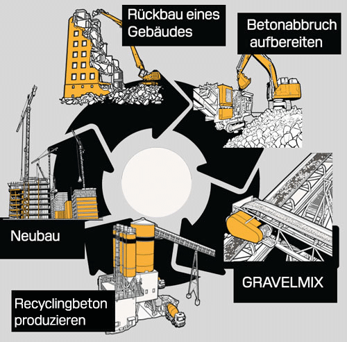 für Recyclingbeton nutzbar war, kehrt damit in die Wertschöpfungskette zurück.